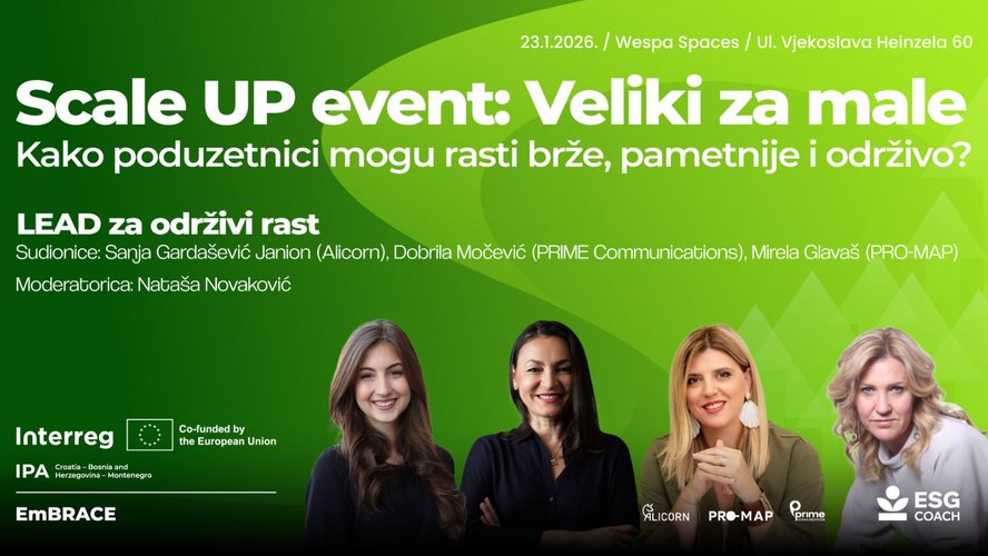 Završni događaj LEAD projekta održava se 23. siječnja 2026. godine u Zagrebu, od 14 sati u prostoru Wespa Spaces, pod nazivom Scale UP event: Veliki za male – Kako poduzetnici mogu rasti brže, pametnije i održivo? Uvodni razgovor o Scale UP partnerstvima u praksi kroz konkretne primjere suradnje velikih tvrtki i ambicioznih malih biznisa aktivno uključuje publiku. Centralni dio programa posvećen je LEAD projektu i održivom rastu, s fokusom na ESG Coach kao alat koji povezuje strategiju, praksu i dugoročnu konkurentnost. Program se nastavlja keynote izlaganjem o ulozi porodičnih tvrtki kao stupova globalne ekonomije, a završava neformalnim Scale UP networkingom, osmišljenim kao prostor za razmjenu iskustava, povezivanje i otvaranje novih suradnji. Broj mjesta je ograničen, a prijava obavezna putem online prijavnice. Događaj je namijenjen poduzetnicima i poduzetnicama, predstavnicima tvrtki, stručnjacima i svima koji žele razumjeti kako održivost i rast mogu ići zajedno, kada se grade na znanju, povjerenju i dugoročnim odnosima.